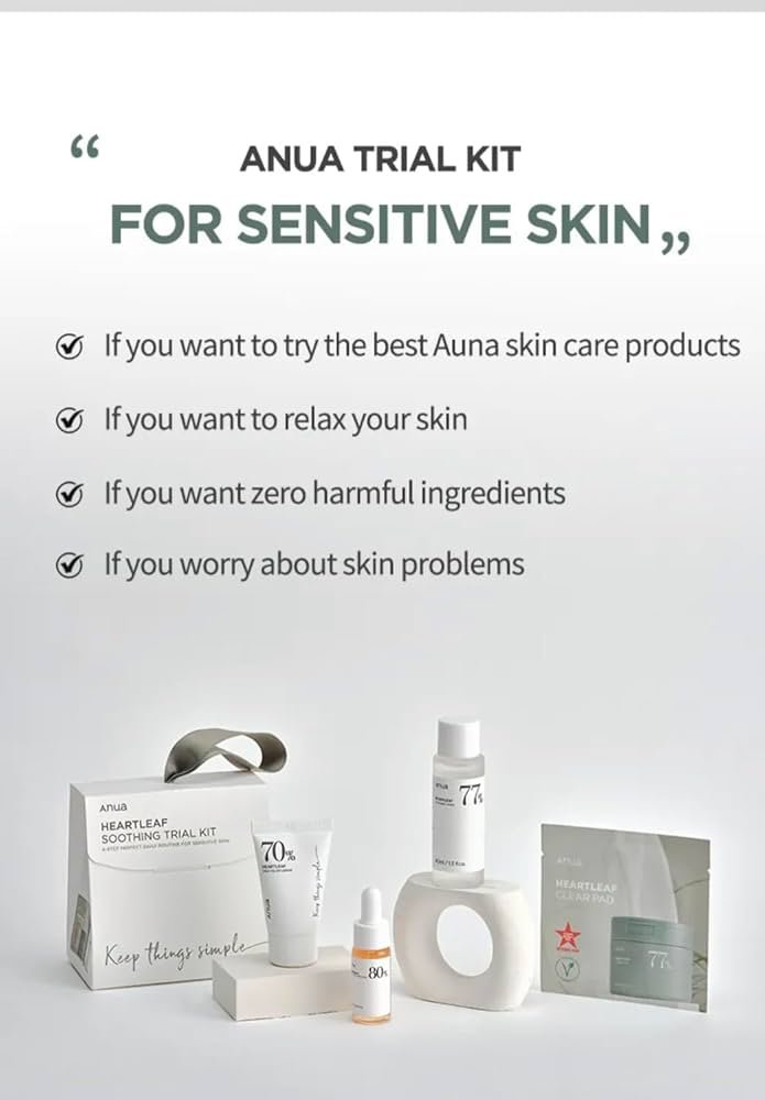 Experience a complete skin-soothing routine with the Anua Heartleaf Soothing Trial Kit, featuring four of Anua’s best-selling products. Infused with Heartleaf Extract, known for its anti-inflammatory and calming properties, this set is perfect for reducing redness, balancing oil production, and deeply hydrating the skin. Ideal for those with sensitive, acne-prone, or irritated skin, this mini kit is great for travel, testing new products, or gifting!
